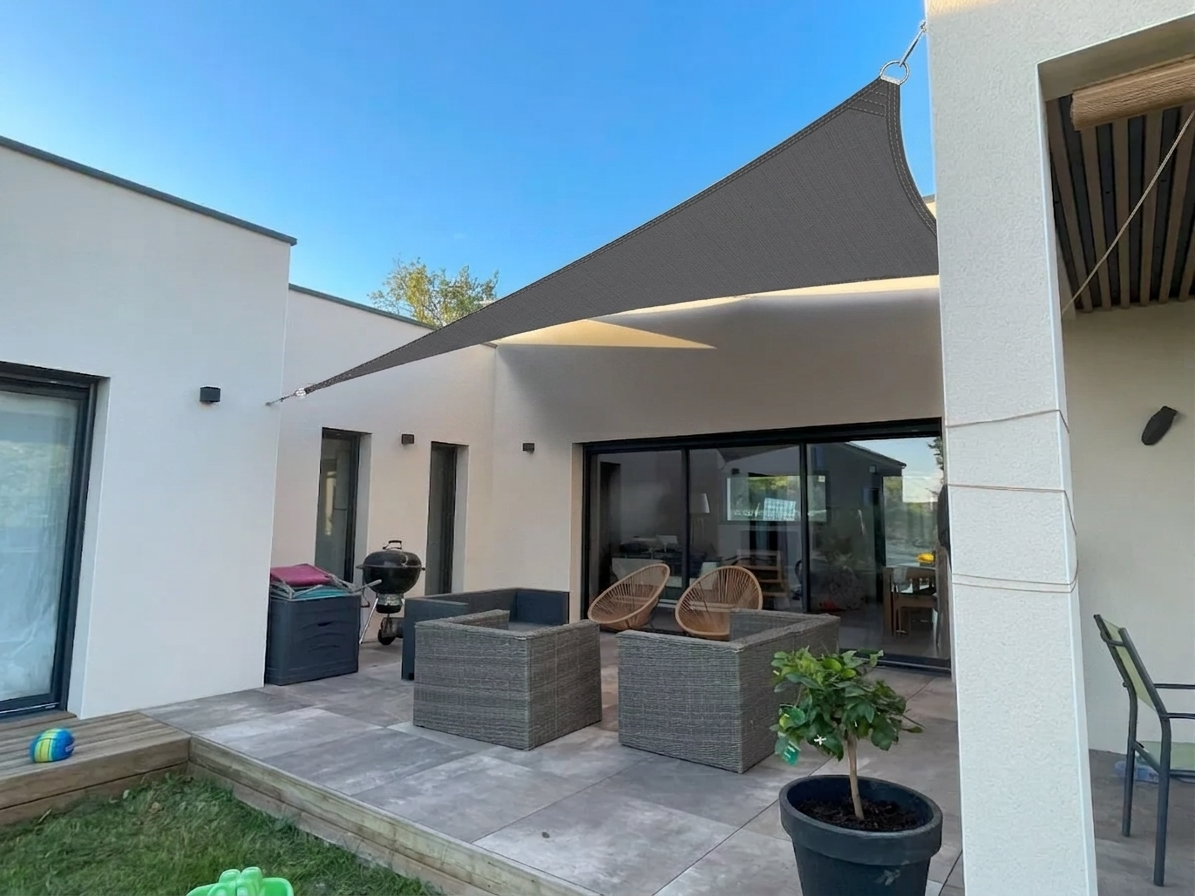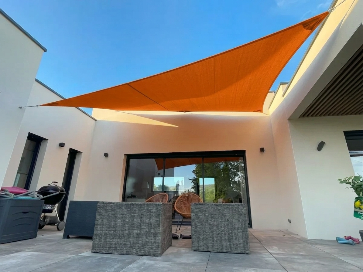 Mesurez la surface a ombrager. Pour une terrasse standard avec table de 6 personnes, une toile 3x4m est generalement suffisante. Pour un grand espace, optez pour une 4x5m ou 5x6m. La toile doit etre legerement plus petite que l'espace entre les points de fixation pour permettre la tension.